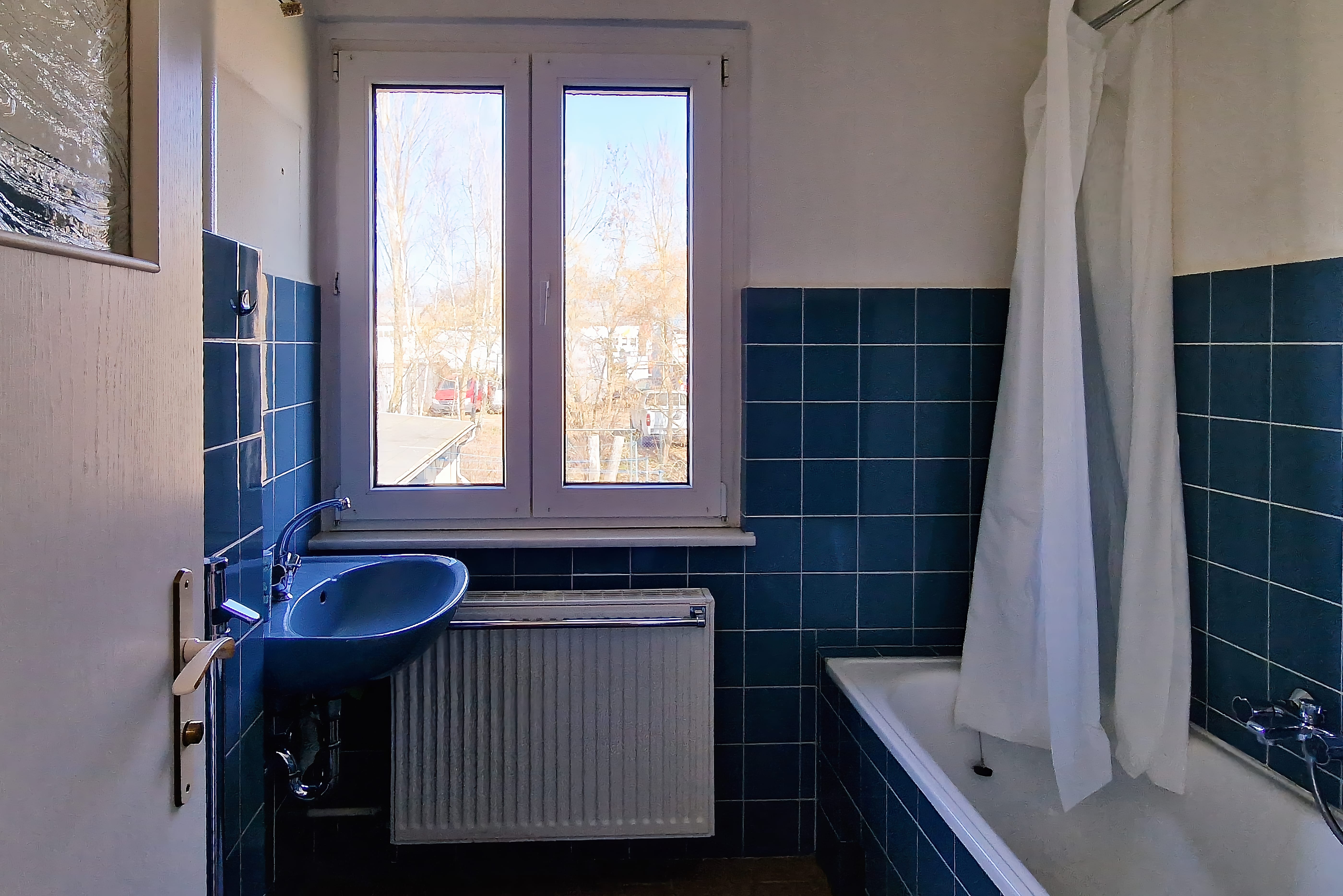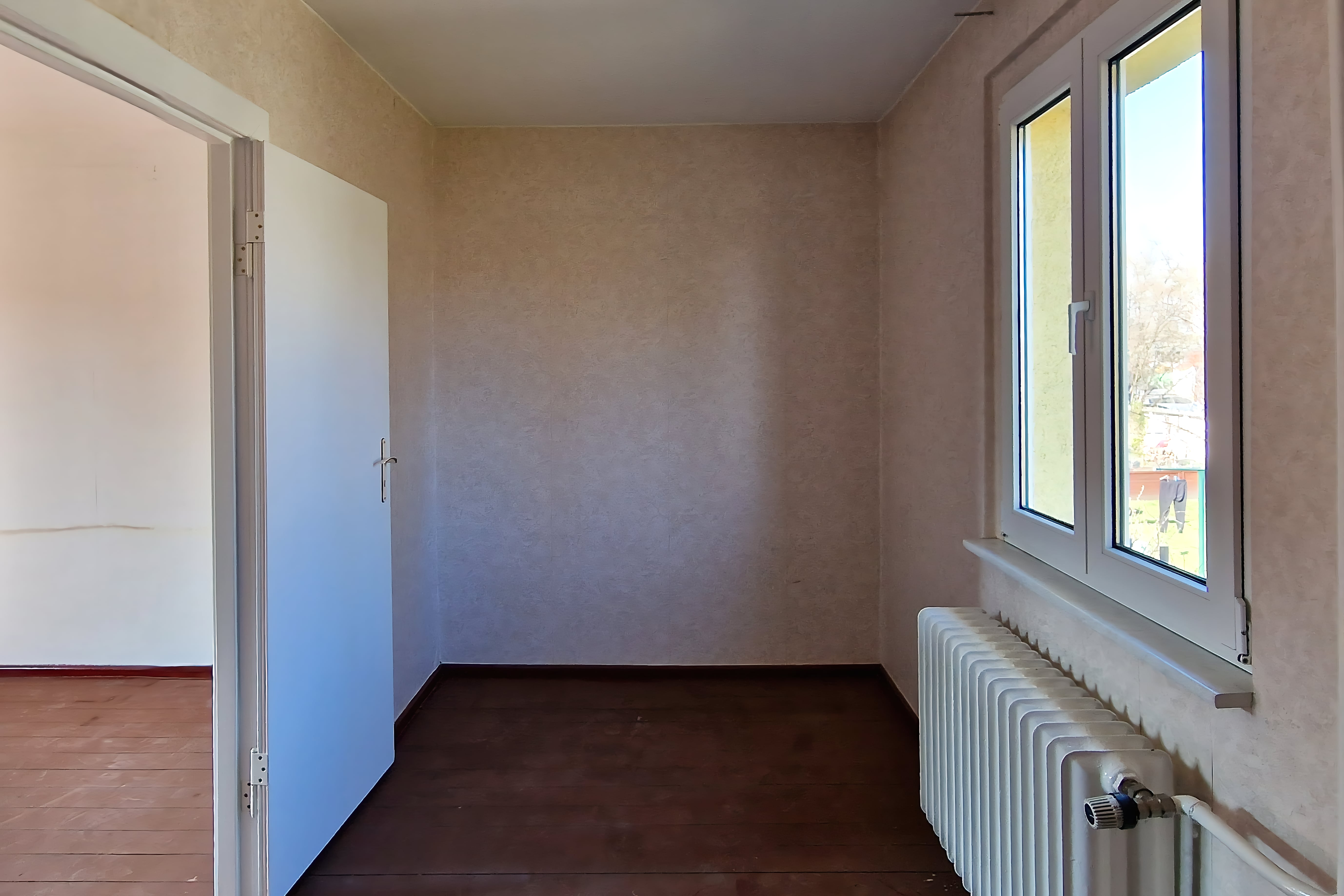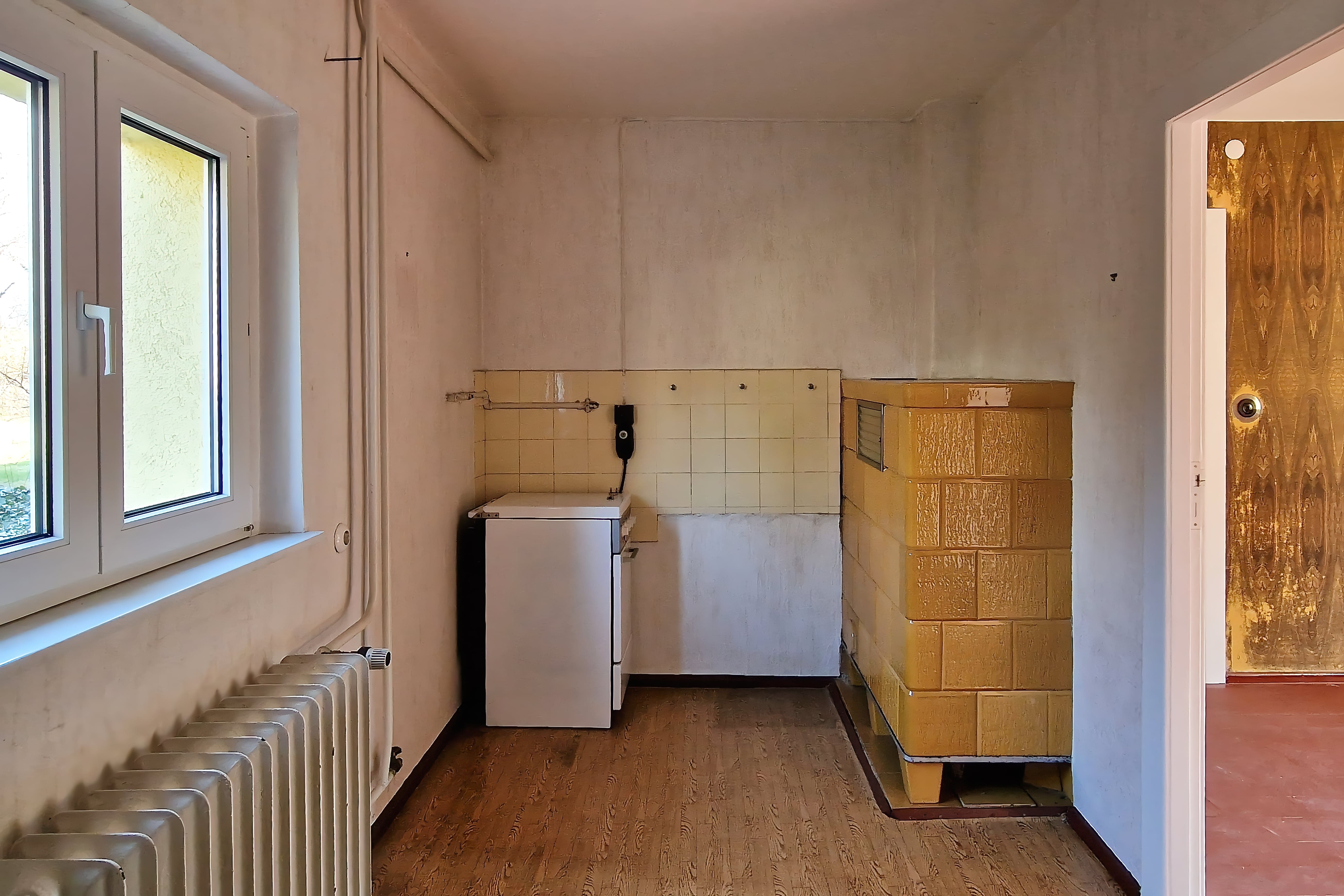 Die Immobilie ist mit zweifach verglasten Kunststofffenstern ausgestattet, die im Erdgeschoss über zusätzliche Fensterläden verfügen. Der Kachelofen kann nach entsprechender Zulassung als Ergänzung des Heizsystems genutzt werden. Das Badezimmer verfügt über eine Badewanne, ein Fenster für natürliche Belüftung und eine einfache, funktionale Ausstattung.