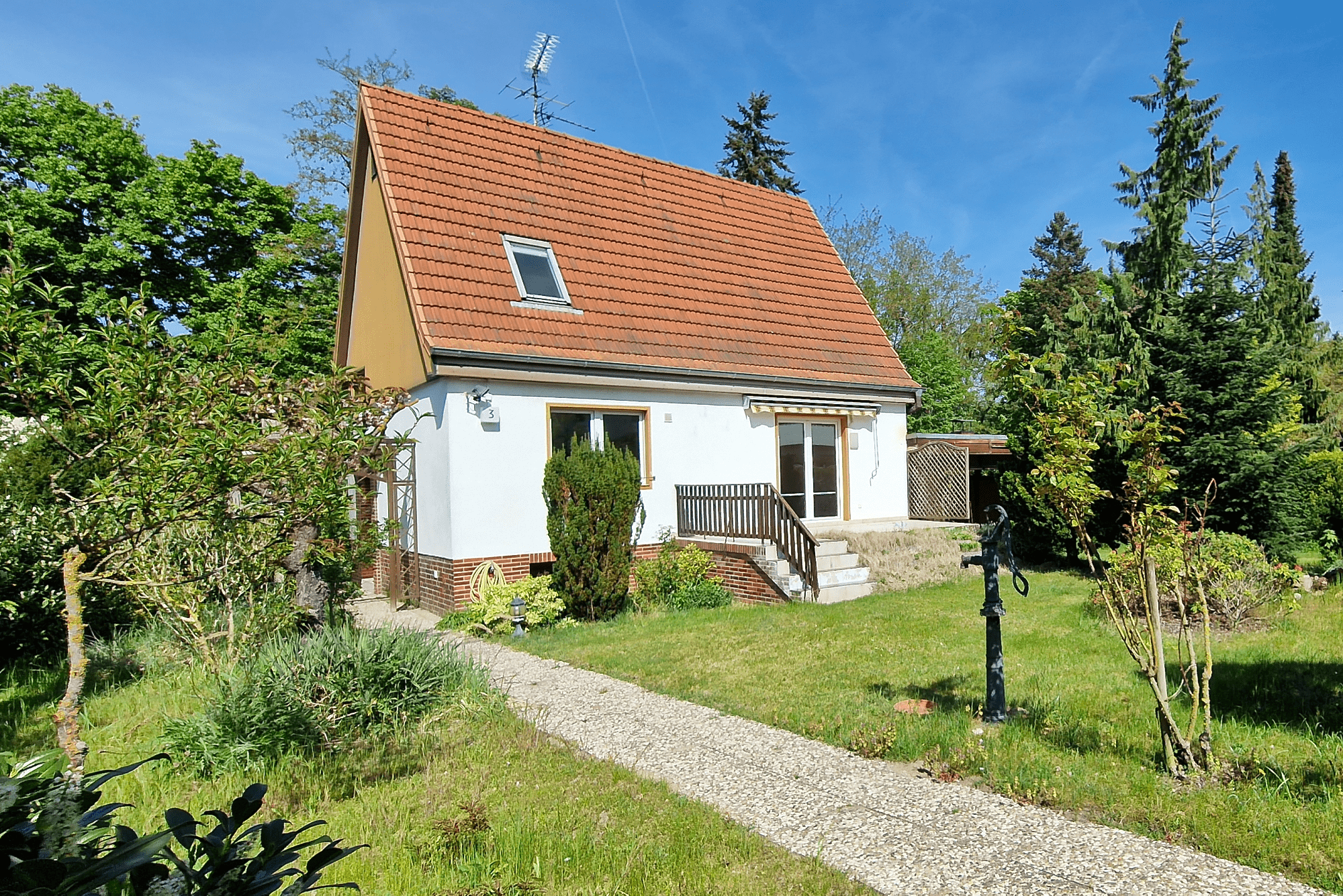 Eine Sonnenterrasse mit Blick in den hübsch angelegten Vorgarten lädt zu entspannten Abenden oder einem gemütlichen Frühstück im Freien ein. Das großzügige Gartengrundstück mit seinen 749 Quadratmetern bietet Ihnen vielfältige Nutzungsmöglichkeiten: Ob Spiel- und Entdeckerparadies für Kinder, blühende Oase für Hobbygärtner, Platzwunder für Liebhaber ausgefallener Hobbys oder Rückzugsort für diejenigen, die Ruhe suchen. Das weitläufige Grundstück schafft auch Freiraum für Hunde, Katzen und andere tierische Mitbewohner mit viel Natur und ohne enge Begrenzungen.